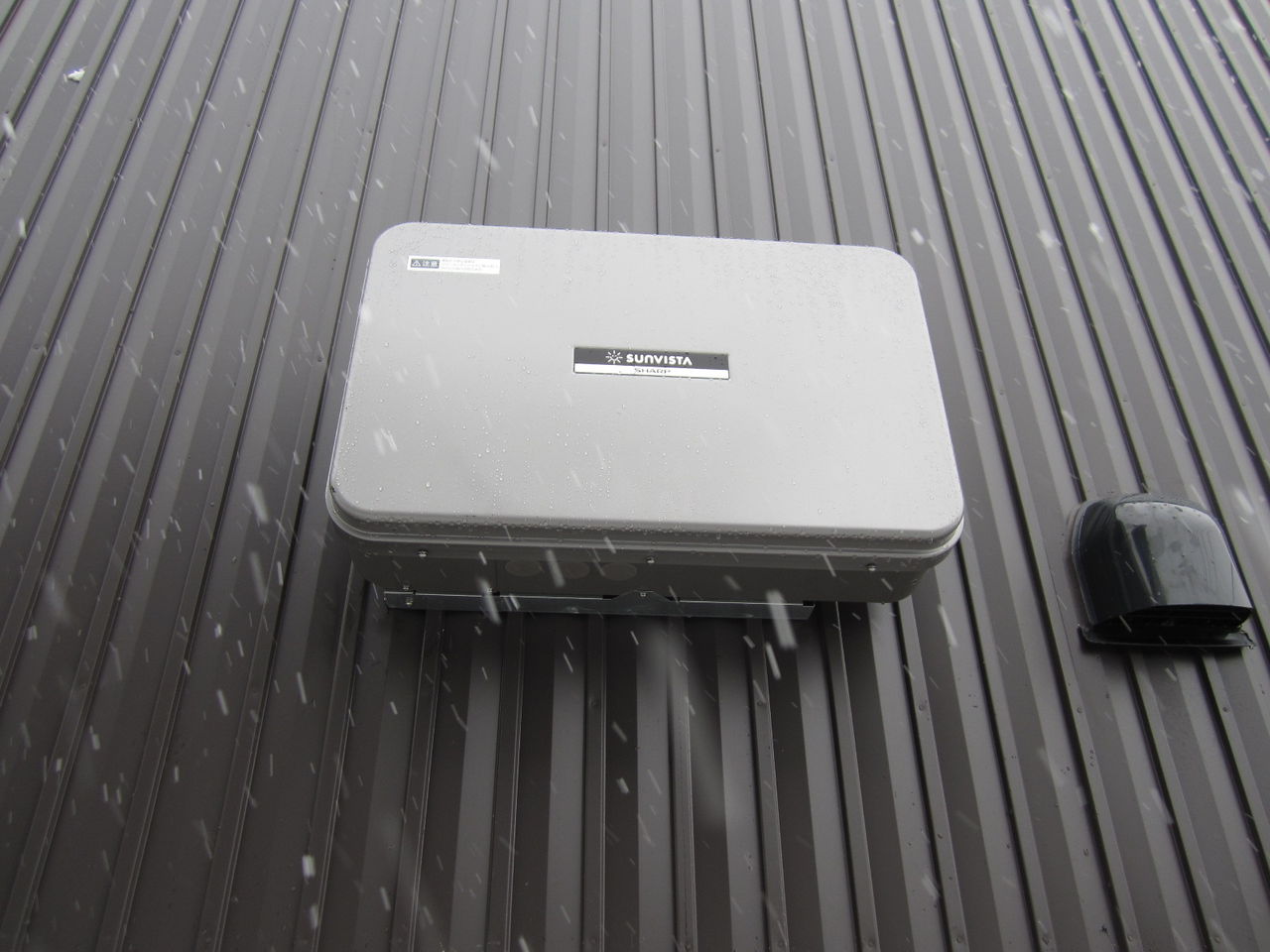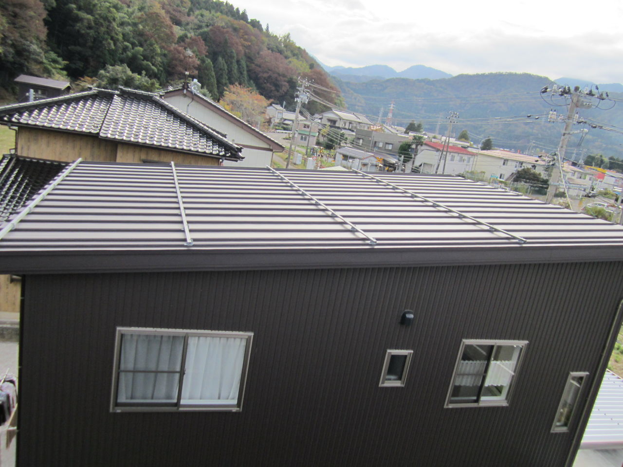 設置前の状況、片流れの金属縦葺き屋根です。