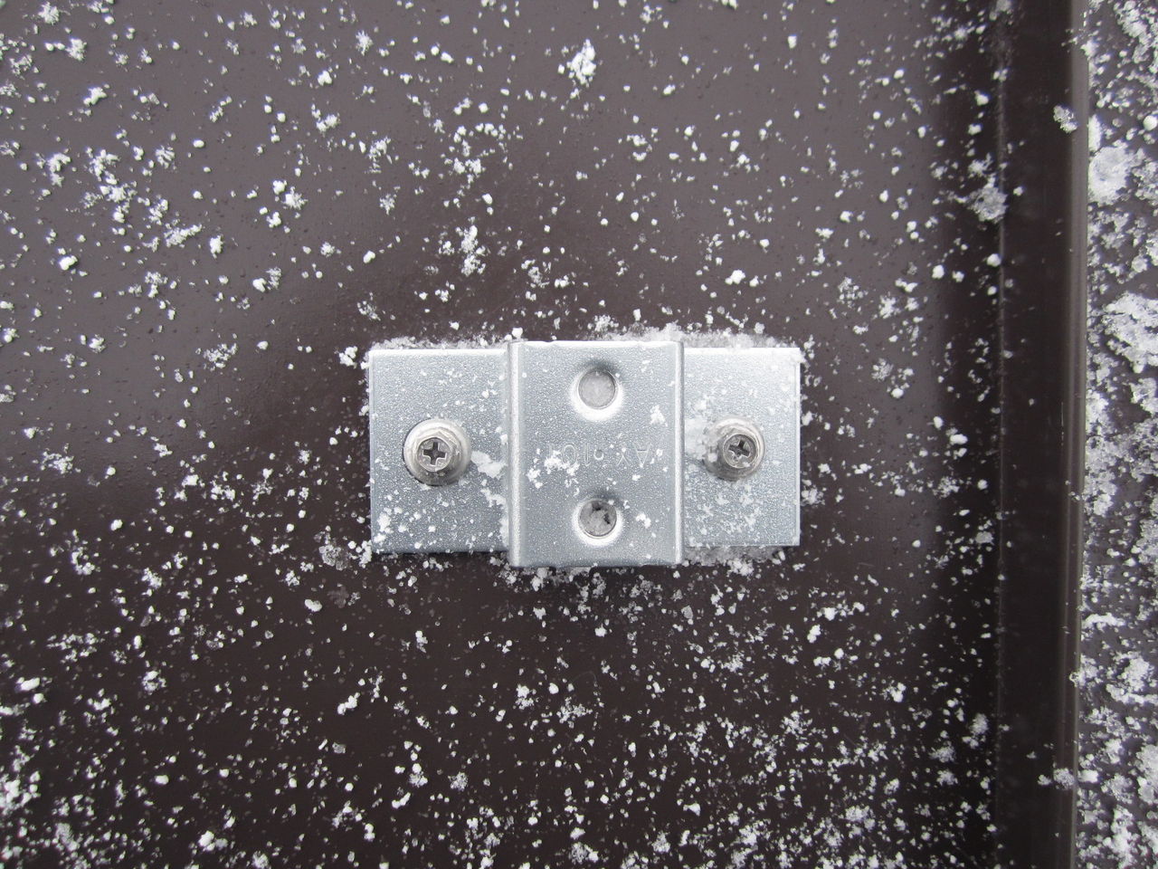 雪を払い、屋根を拭いて設置し、ステンビス2本で取り付けます。