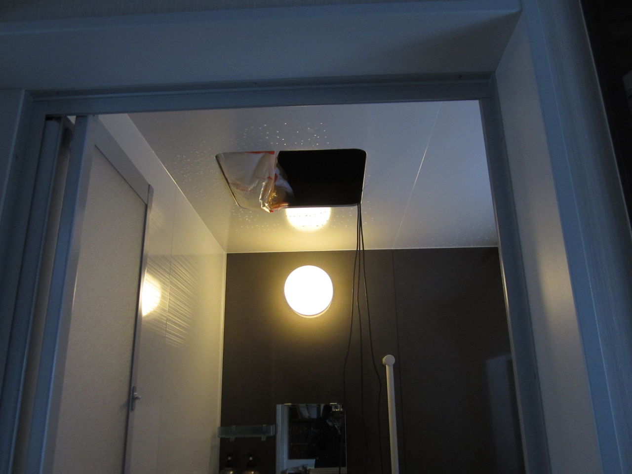 屋内の配線は見えないように、浴室の点検口から入って