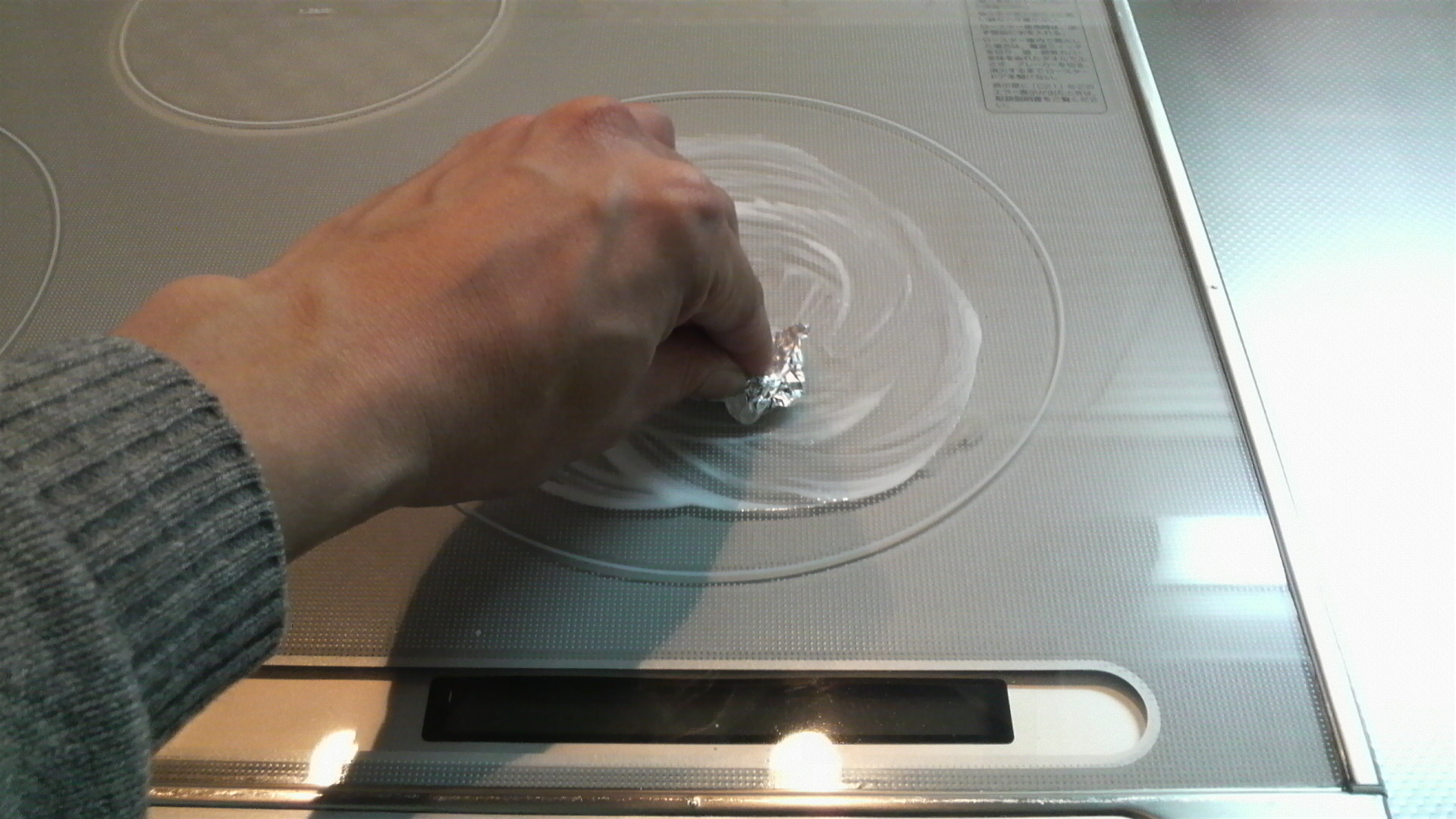 丸めたアルミホイルで優しくクルクルと撫でていきます。