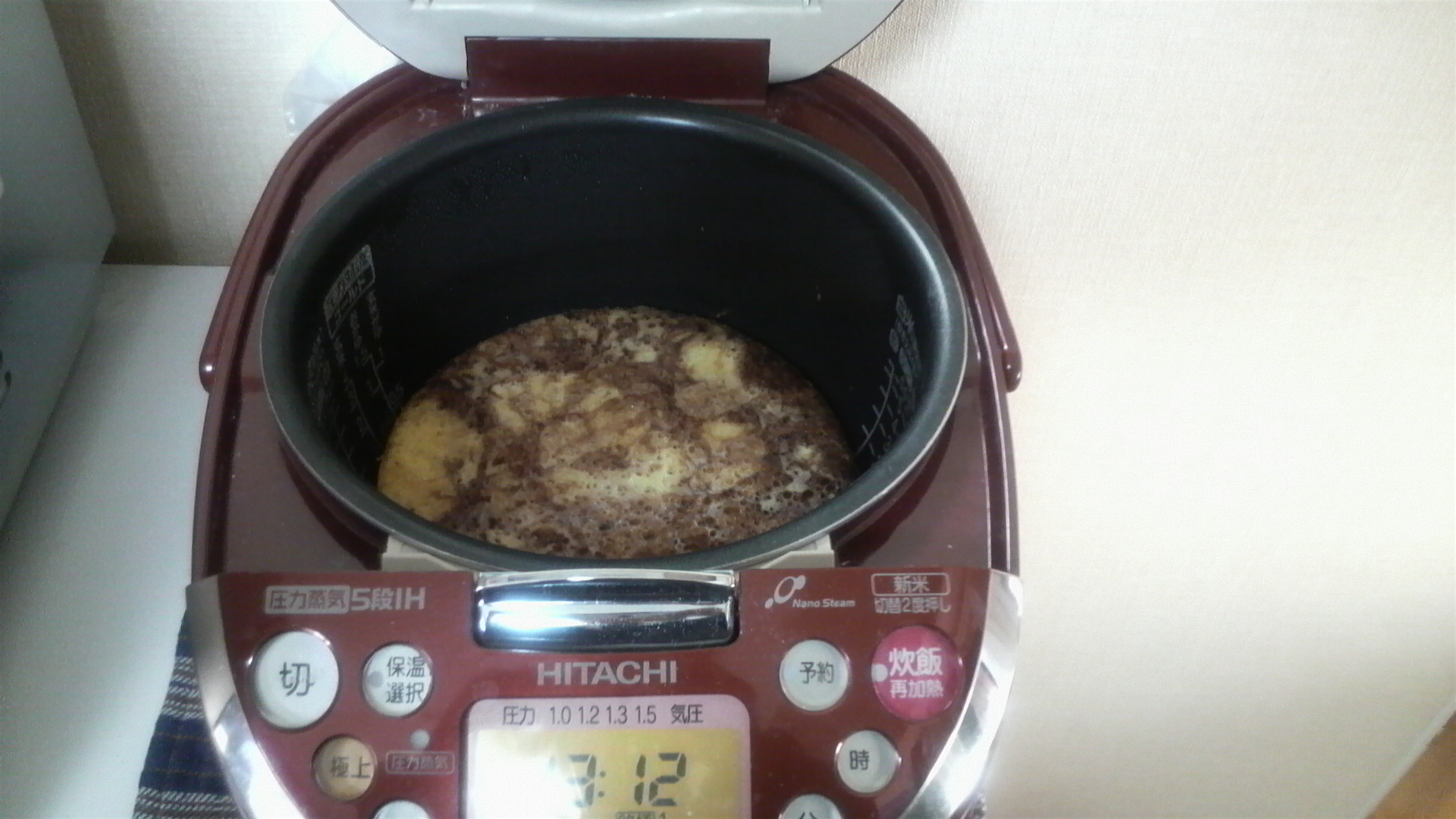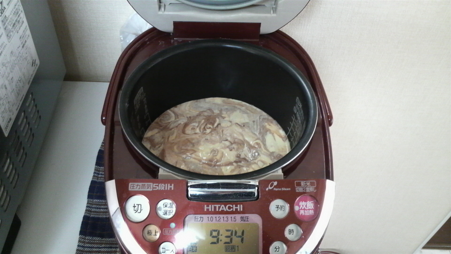 炊飯器にセットし、メニューのケーキを選びます。